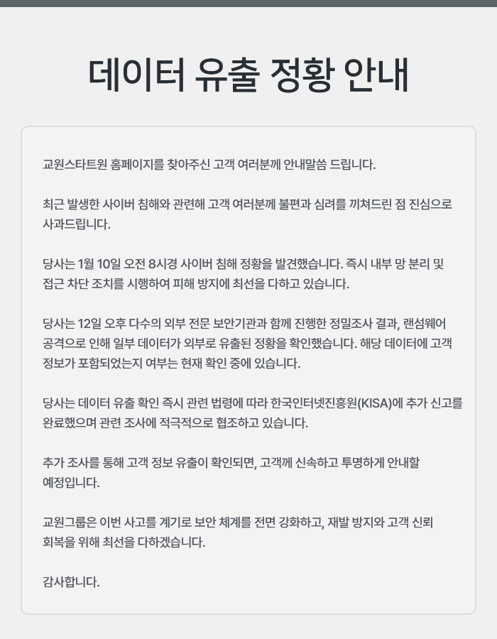 교원스타트원 주문관리시스템을 통한 실시간 재고 확인 가능